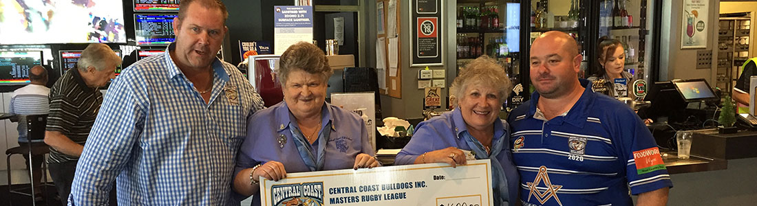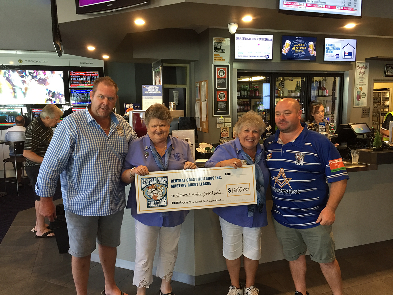 Like Freemasons on the Central Coast, the CC Bulldogs are strong supporters of Central Coast Kids in Need (CCKIN) and, following well-supported raffles conducted on the day, they presented a cheque for $1,660 to Lorraine Churchill and Rhonda Doyle representing the charity.