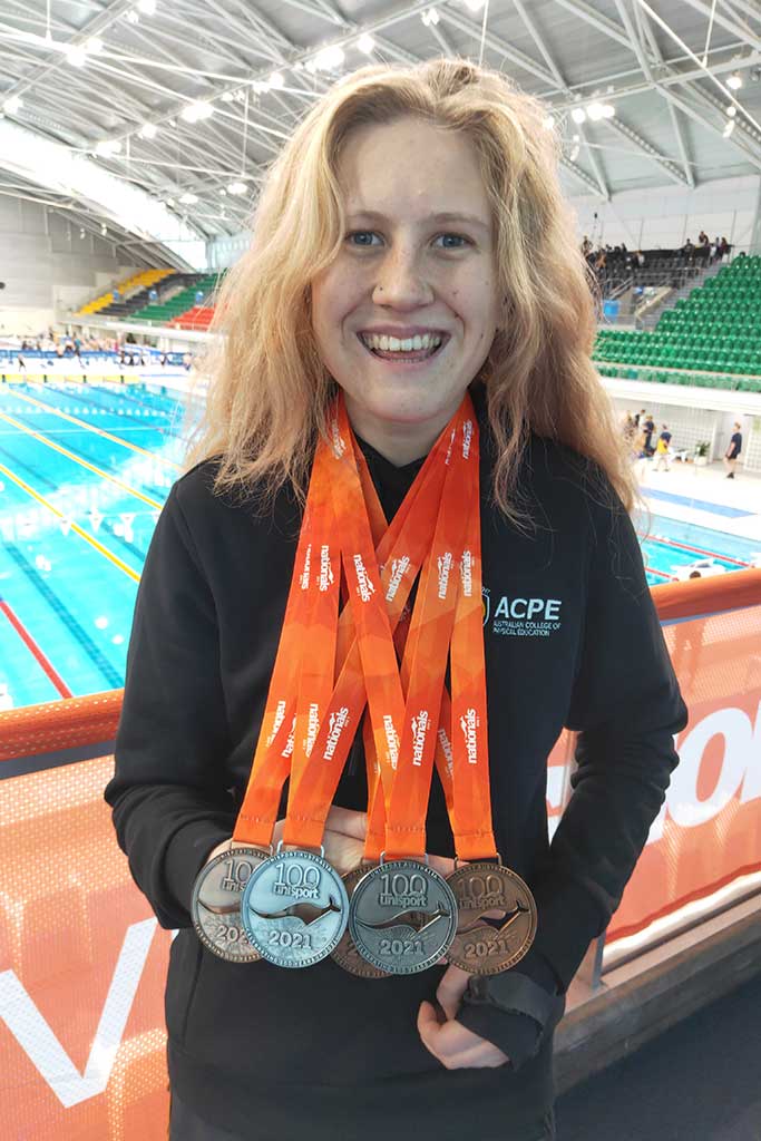 She is currently training six days a week at the Toukley Aquatic Centre and competes for Woy Woy Swimming Club.
