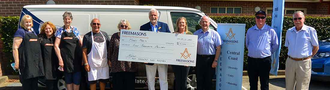 This morning Freemasons on the Central Coast presented a cheque for $5,000, plus an additional $300 from one of the lodges, to Mary Macs.