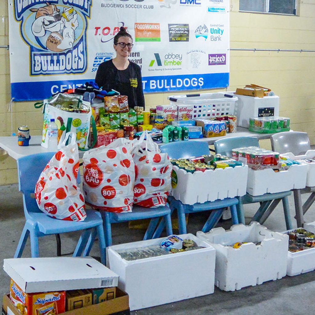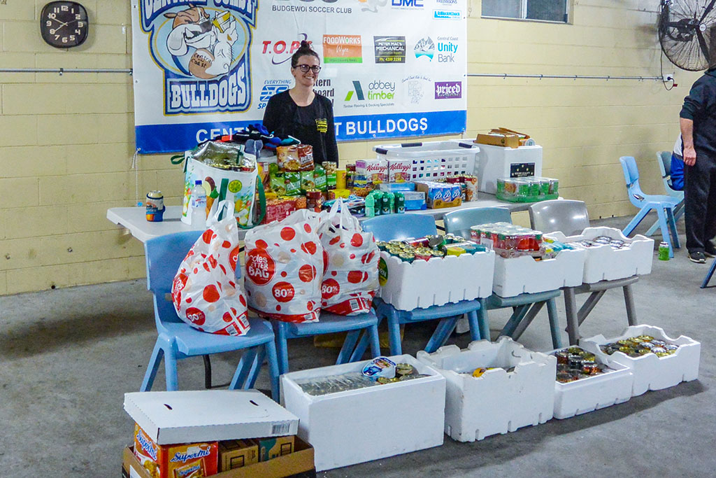 Sheridan from The Shoebox Revolution arrived in her car to collect some socks and soup donated by the Central Coast Bulldogs and Freemasons on the Central Coast.