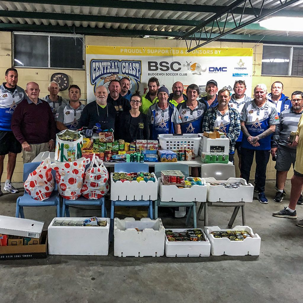Last week, Sheridan from The Shoebox Revolution arrived at the training grounds of the Central Coast Bulldogs to collect some socks and soup cans that had been donated by the Bulldogs and the Freemasons. However, she didn’t count on the enthusiasm of the team who had managed to collect over one thousand pairs of socks and soup cans for the many people on the Central Coast who are struggling.