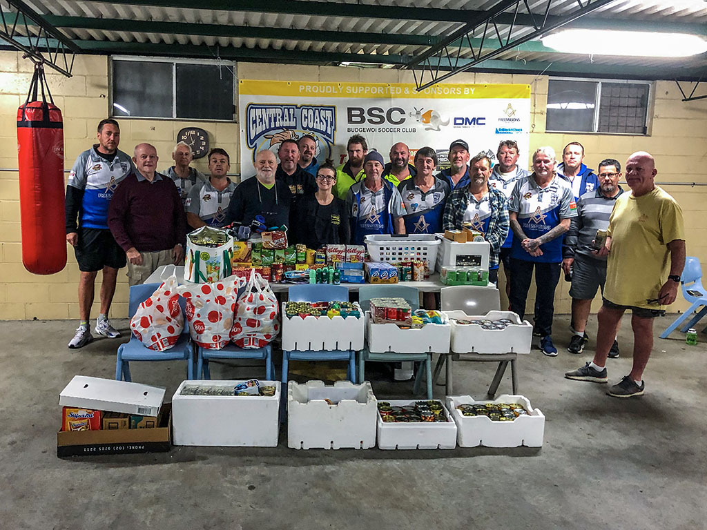 Paul Pafumi from the Central Coast Bulldogs and Chris Matthews from Freemasons on the Central Coast presented Sheridan with the vast collection.